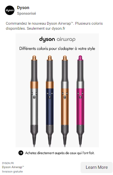 Passer de l’étape du clic sur la publicité vers votre page de destination doit être pour l’utilisateur une action naturelle, sans aucun point de friction. Il doit immédiatement comprendre le lien logique entre ce qu’il a vu sur votre publicité et le contenu qui lui est proposé sur la page de destination. La page de destination va être le premier point de contact de l’utilisateur avec l’environnement de votre marque. La promesse, le positionnement et les éléments de réassurance qui l’ont poussé à cliquer sur votre annonce doivent réapparaître sur cette page afin que son parcours le dirige un peu plus vers votre objectif de conversion. L’expérience utilisateur est donc clé et doit être optimisée au maximum. Dans son étude, Meta distingue 5 typologies de pages de destination :