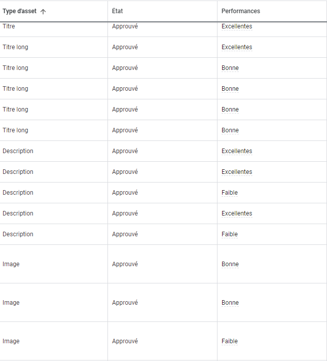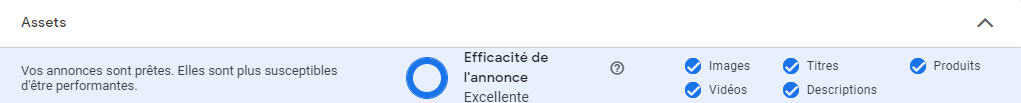 Pour rappel, voici la liste des assets compatibles avec les campagnes Performance Max :