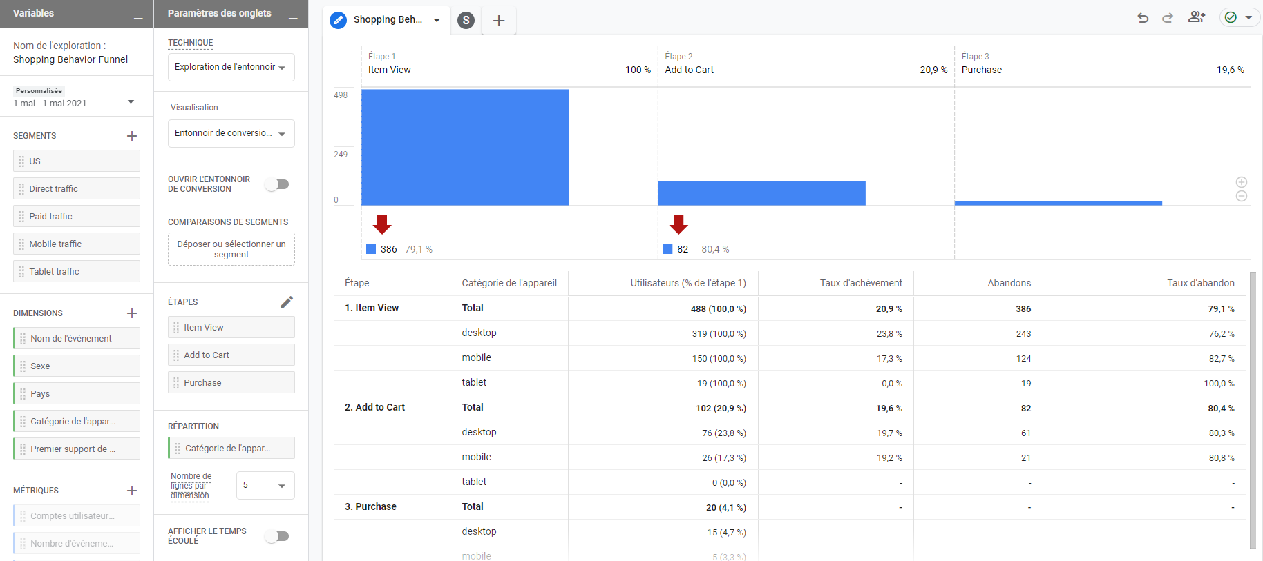 Selon ce que vous souhaitez visualiser, le paramétrage peut requérir certains éléments, nous pouvons vous accompagner pour réaliser les entonnoirs de conversion que vous souhaitez.