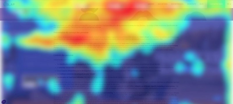 Ces observations vous aident ensuite à identifier, recréer et modifier les éléments du site web, à optimiser l’expérience sur l’ensemble des propriétés numériques et, par conséquent, à augmenter votre taux de conversion.Des comparaisons globales qui nécessiteraient des jours d’étude et de tri des données peuvent être facilement effectuées après un seul coup d’œil à la heatmap générée. En offrant une vue visuelle des données numériques sous une forme prête à l’emploi, les heatmaps rendent l’analyse beaucoup plus rapide et plus facile qu’à partir de tableaux d’analyse de données.Chez SLAP digital, nous pouvons vous aider à choisir les pages à analyser et le type de heatmap à effectuer. Grâce à notre expertise, nous pouvons recueillir pour vous toutes les données comportementales de vos utilisateurs et définir une stratégie sur les actions à mettre en place pour augmenter votre taux d’engagement et de conversion sur les pages analysées.