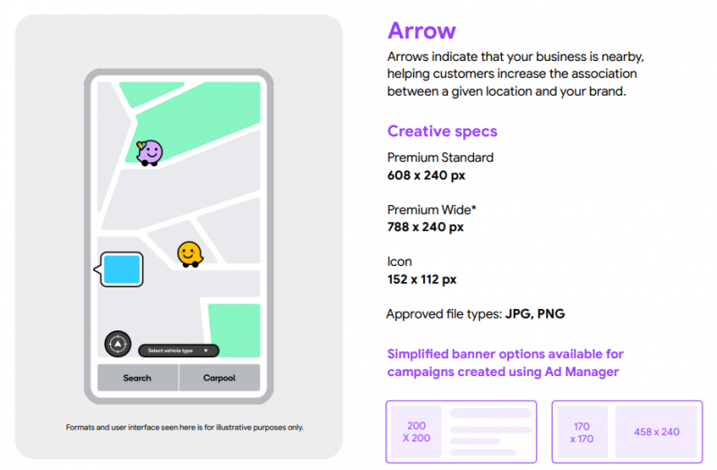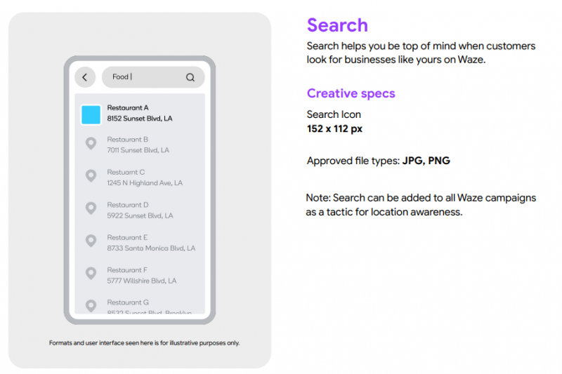 Pour permettre de booster la visibilité des points de vente, Waze Ads propose 4 formats publicitaires.